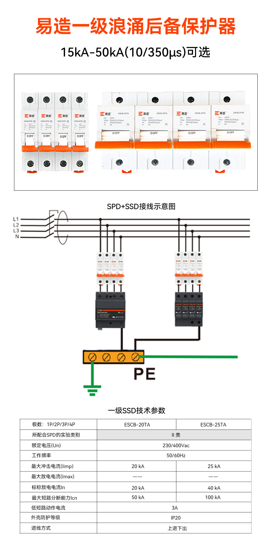 • 25kA一级浪涌后备保护器